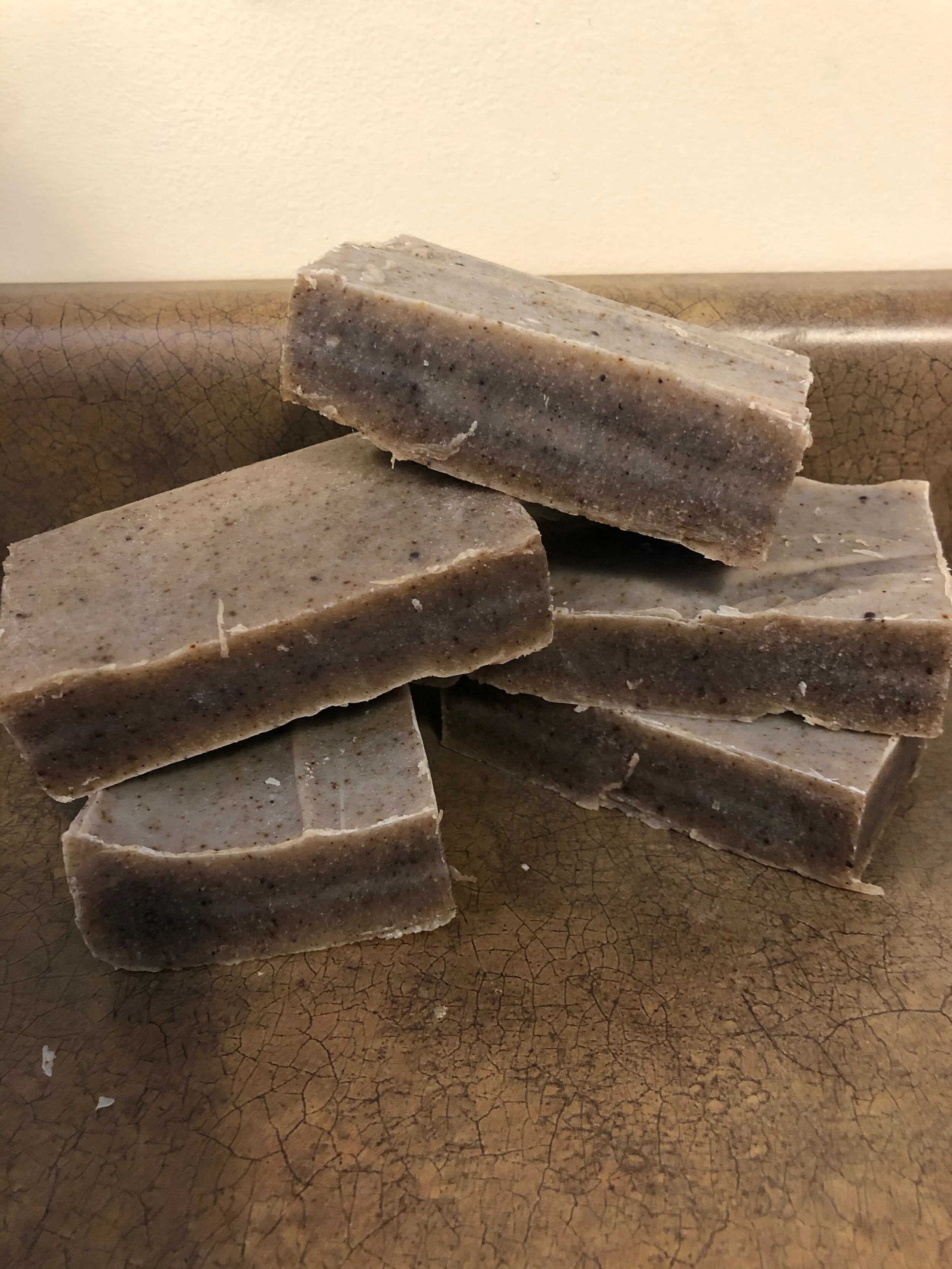 We make lye soaps from scratch, in a variety of scents, sizes, and shapes. Big bars are $5, small bars are $4. Sizes are approximate, as the tops of the bars have a rough texture.